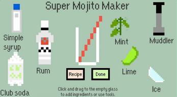 Follow the recipe to mix a lovely digital drink in Super Mojito Maker! This is a weekly assignment I put together for a class. Turn the sound on for best feedback (to make sure it registers all your actions).